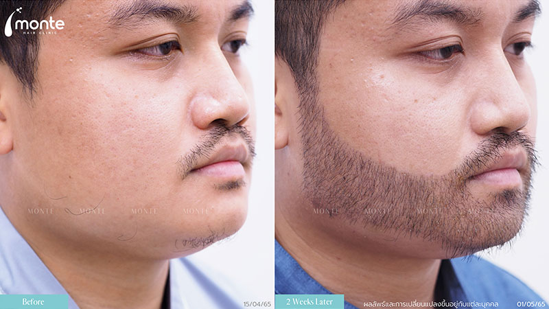 - 12 เดือนขึ้นไป เป็นช่วงที่เห็นผลลัพธ์สูงสุด หนวดเครางอกหนาขึ้นเต็มพื้นที่